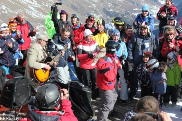 Сотни туристов отправились на станцию «Кафе Ай», где состоялась основная часть концерта бардовской песни. Михаил Калинкин исполнил песни из своего нового альбома, посвященного юбилею канатных дорог. Горнолыжники подхватывали мотив и дружно подпевали барду. Выступивший перед участниками мероприятия министр спорта и туризма КБР Аслан Афаунов сказал о необходимости возрождения горнолыжного спорта в Приэльбрусье. «В советские времена Приэльбрусье завоевало популярность благодаря проведению здесь соревнований по горнолыжному спорту различного уровня. Нередко в них принимали участие и зарубежные горнолыжники. Нужно возрождать горнолыжный спорт, дабы вернуть былую славу Приэльбрусью», - отметил министр.