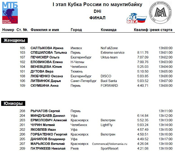 - "Юниоры": Рычагов Сергей (Пермь, Commencal/Velomania.ru),