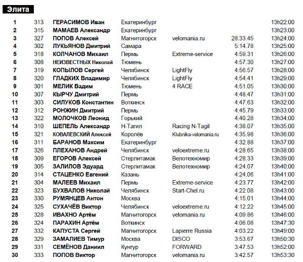 - "Элита": Попов Виктор (Магнитогорск, Commencal/Velomania.ru),