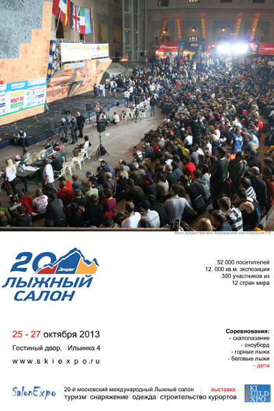 25-27 октября 2013 в Москве (Гостиный двор, Ильинка, 4) пройдет юбилейная 20-я выставка путешествий, горнолыжных товаров и услуг и всего, что связано с активным отдыхом.