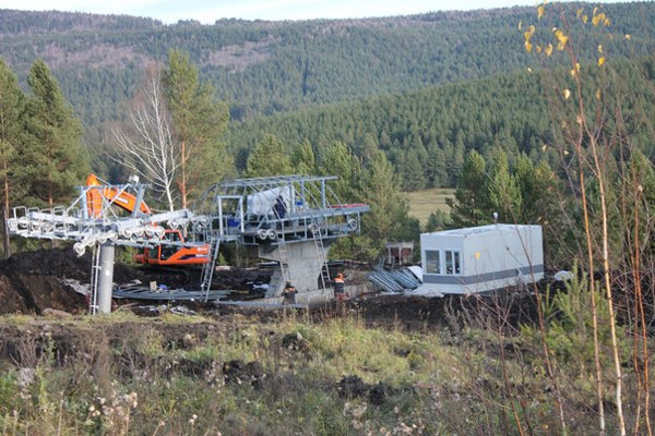 Уже установлены 17 опор из 20, нижние и верхние станции. Установка оставшихся 3-х опор на северном склоне, фундаменты которых уже готовы, планируется на 25 октября при помощи грузового вертолета, поскольку этом месте уклон склона составляет около 45 градусов и обычная техника подъехать не имеет возможности.