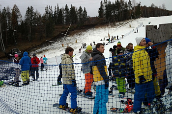 В 11-00 по 9 трассе скатился первый сноубордист, к 12-00 на малом комплексе уже собралась толпа в несколько сотен! У подъемника собралась большая очередь - всем не терпелось скорее скатиться со склона, впервые в этом сезоне!