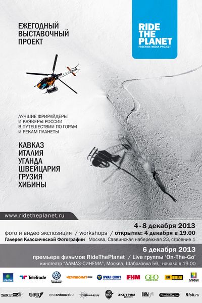 Выставка фотографий, мастер-классы, показ фильмов в кинотеатре и живой концерт – все это часть масштабного медиапроекта RideThePlanet, рассказывающего зрителям о путешествиях российских фрирайдеров.