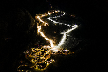 На Курорте Красная Поляна расположена одна из самых обширных в горном кластере зон катания под звёздным небом протяжённостью 5 км. В настоящий момент райдерам в вечернее время будут доступны трассы: