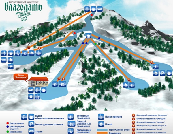 Горнолыжный комплекс "Благодать" по праву является популярным местом в Сибири для активного зимнего отдыха. Комплекс обладает развитой инфраструктурой: