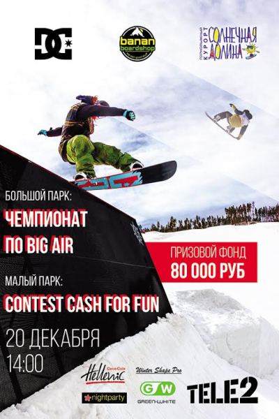 А в малом парке все любители сноуборда смогут в меру своей смелости и приобретенного мастерства показать крутой трюк, и, если взыскательному судье попытка понравится, получить за это деньги. Общий призовой фонд кон-теста составит 80 тысяч рублей.