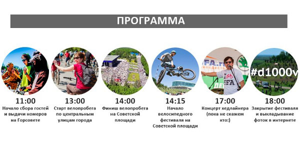 Пятый ежегодный фестиваль "День 1000 велосипедистов" в Уфе традиционно включает массовый велопробег по центральным улицам города и велофестиваль.