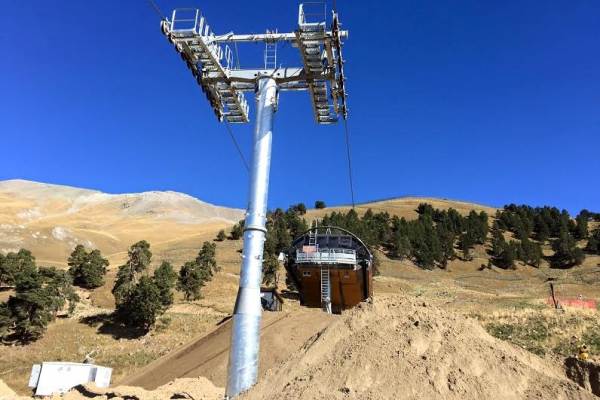 В соответствии с графиком выполнения строительно-монтажных работ монтируется гараж кресел, смонтирована операторская станция на нижней станции канатной дороги, ведется монтаж технологического оборудования. Выполняется протяжка несуще-тягового каната.