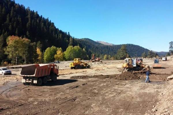 Завершаются работы по планировке трех горнолыжных трасс общей протяженностью около 7 км «синего» и «черного» уровня сложности, монтируется система дренажа склонов. На всех новых трассах будет работать система искусственного оснежения. Для максимально безопасного катания склоны оснастят габионными сетками.