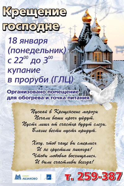 Главная / Лента новостей / Новости ГЛЦ / 18 января в Абзаково состоятся Крещенские купания в проруби