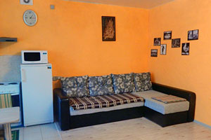 Квартира-студия в центре горнолыжного курорта в гостиничном комплексе «Людмила». Квартира новая, чистая, уютная, имеются все условия для проживания: холодильник, электрический чайник, микроволновка, электрическая плита, стиральная машина.