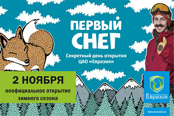 Успеть прокатиться по первому снегу и встретиться с друзьями – 2 ноября центр активного отдыха «Евразия» откроет учебный склон для тех, кто не в силах ждать наступления календарной зимы. Праздник «Первый снег» - это неофициальное открытие нового зимнего сезона 2016/17, которое состоится в предстоящую среду.