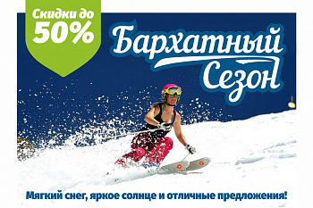 - Тариф «Временной – Бархатный сезон» со скидкой более 45% на пользование кресельным подъемником.