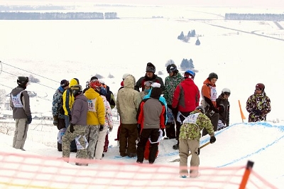 Обстановка начинает нагреваться в связи с тем, что бордеркросс задерживается - организаторы не успели выгладить части трасс и разметить их. Работники, которых им выделил «Чекерил», больше напоминали деревья в лесу - толку от них было столько же.