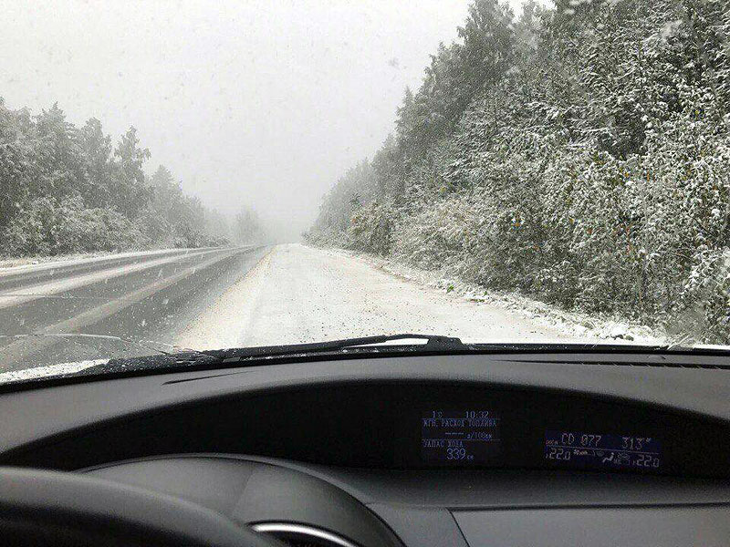 Осадки оказались довольно обильными, обочины покрылись белым слоем снега. Правда, первый снег, как правило, бывает недолговечным. Но... Зима близко!