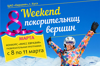 9 марта в ЦАО «Евразия» с 14:00 у подножья склона будет проходить развлекательная программа. Конкурсы, викторины и, конечно же, ценные призы и подарки ждут всех покорительниц вершин.