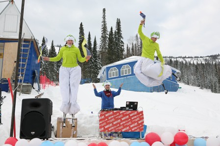 Для всех, кто терпеливо ожидал белого чуда группа компаний: ООО Каскад подъем, Отель «Елена», Кузбасская топливная компания, туристическая компания «Каскад-тревел» устроили веселый праздник на площадке у посадки на кресельный дороги и кафе «Пуля-1»