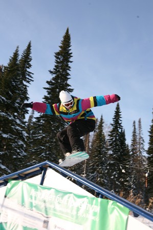 Вдоль линии бугельного подъемника расположилась джибб линия сноупарка. Здесь, на фигурах, изготовленных специально к открытию, свое мастерство демонстрировали ньюскуллеры и сноубордисты.