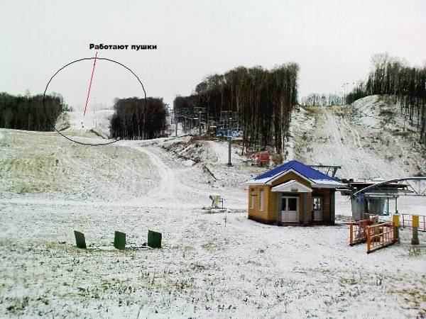 Работают четыре пушки, которые производят по 20 кубометров снега в час. Такими темпами понадобится около десяти дней на оснежение зеленой и красной трасс, и вскоре ГЛЦ "Татнефть" порадует катающихся своим открытием.
