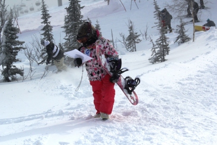 Открывался фестиваль соревнованиями «жестких» сноубордистов, которые провели «слалом» в рамках ежегодного съезда карверов «Дуга зовет». Погодные условия были впрочем, не совсем под «жестких»(две недели снегопадов располагали скорее к фрирайду и беккантри), но участники мужественно пытались «резать» по мягкому склону на трассе «Каскад подъем» по БКД 40.