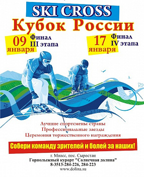 А так же в Солнечной долине в рождественские праздники будет проходить «III этап Розыгрыша Кубка России по фристайлу, в дисциплине ски–кросс», в третий раз, за проходящий сезон, курорт, встречает на своих склонах, сильнейших спортсменов страны в этом виде спорта.