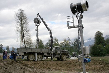 Для оснежения территории Плато Роза Хутор выбраны пушки-автоматы. Когда температура воздуха станет достаточной для начала работы, датчик подаст сигнал на открытие клапанов и генератор начнёт делать снег. Кристаллики льда за считанные минуты покроют сложные склоны с виражами, буграми и другими препятствиями.