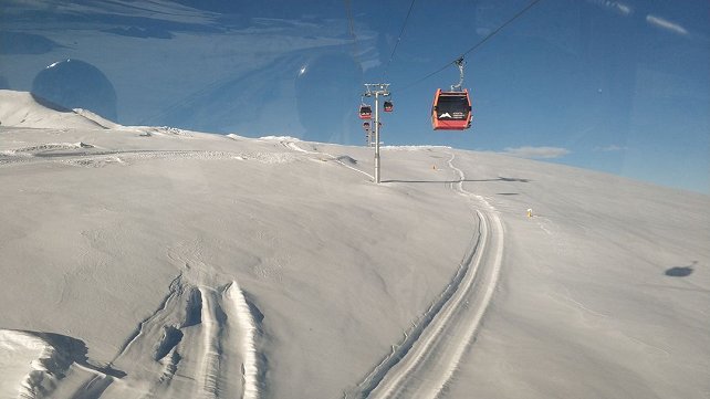 К обеду подтянулось много начинающих и бордеров, появились очереди на подъемник и трасса подпортилась. В целом всё понравилось.
