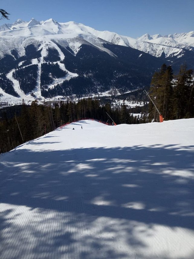 Зеленая трасса в хорошем состоянии. Бугров нет. Народу мало. Погода замечательная.