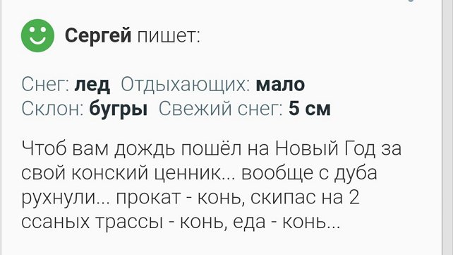 Публикуйте отзывы после каждой поездки, и вместе мы составим самую точную картину о ситуации на склонах! Гость пишет: