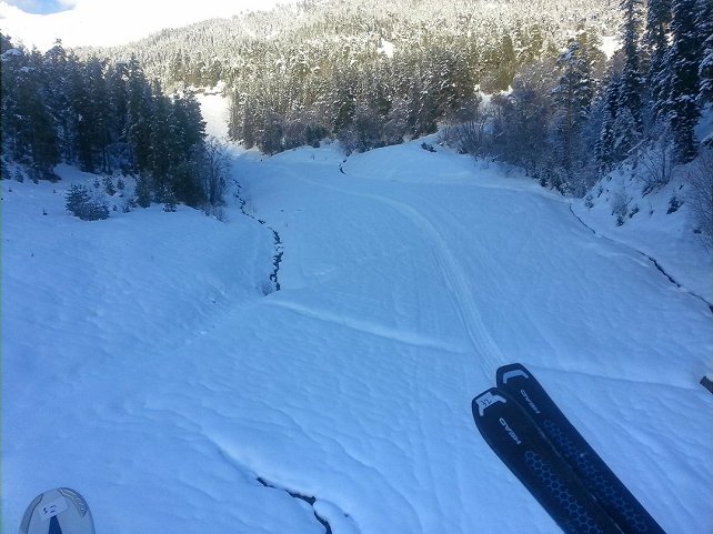 доживает свои крайние дни т.к. шли борозды и насыпь ледяных комьев(мелких). Бугров не было видимо из-за погоды было в среднем -20. Под конец отдыха открыли трассу до середины кресельного подъемника.Спортсменов было не много.