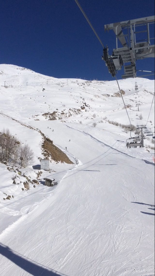 Склоны ледяные, снега нет практически нигде, все сдул сильный ветер Катались