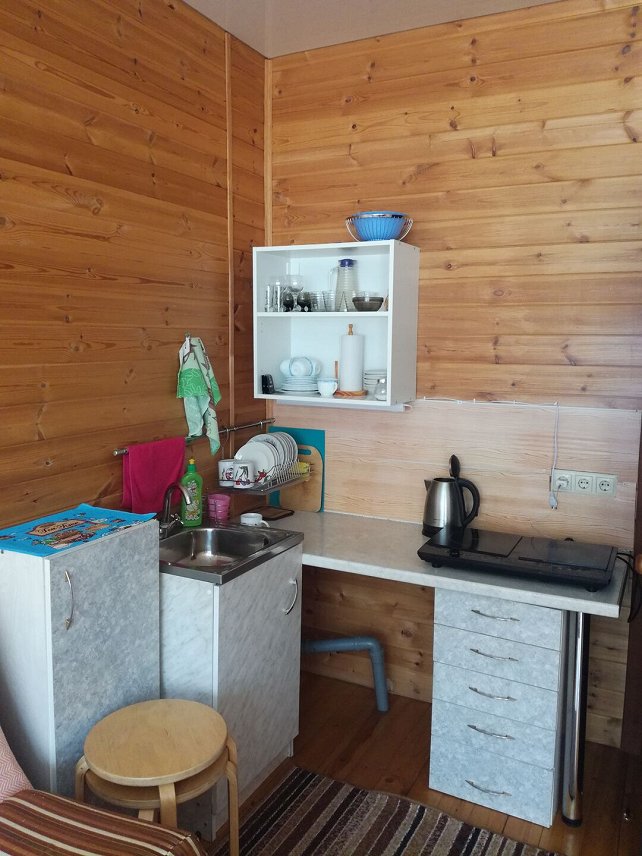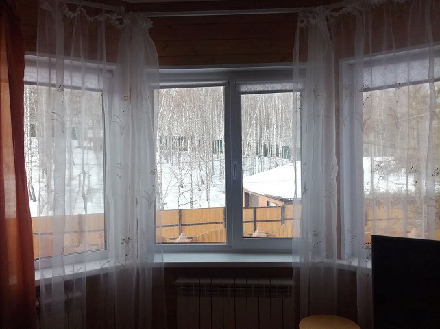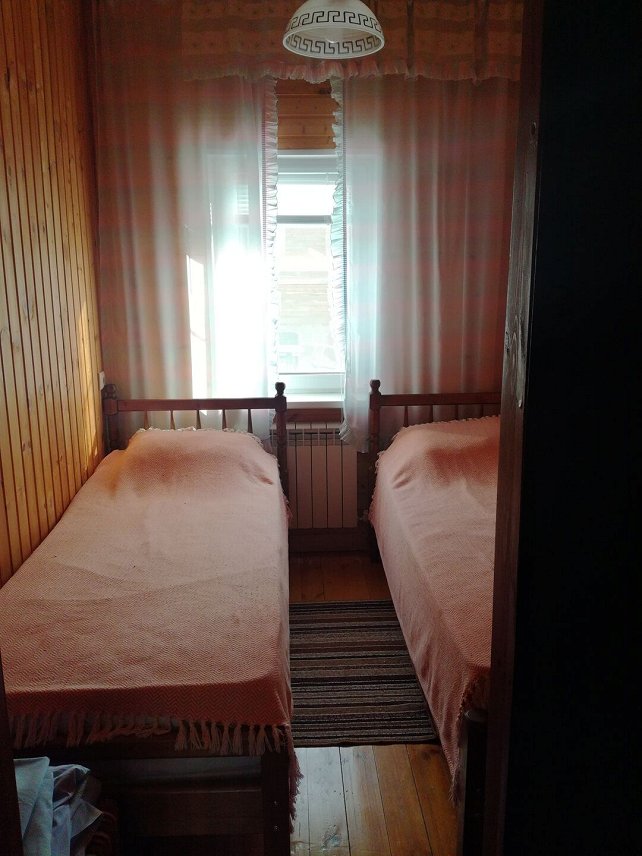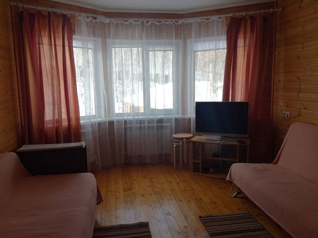 очень уютный и теплый. Расположен на первом этаже. Нас было двое отдыхающих, поэтому было комфортно, если четыре человека, то будет тесновато. В доме имеется большая комната с шикарным видом на лес, очень красиво. Маленькая комната компактная с двумя кроватями. Вся посуда имеется, электрочайник, индукционная плита, полотенца, свежайшее постельное белье. На территории имеется большой гостевой дом, банька на дровах и детская площадка.Територия огорожена.Для каждого дома есть просторная беседка, где очень здорово! Татьяна - душевная, заботливая хозяйка! Всегда находится на связи по если возникнут вопросы, то быстро решает! Дом находится на горе ,удаленно от центра, что создаёт атмосферу погружения в лесную обитель. Отдых отлично подходит для активного отдыха, так и для спокойного релакса.До магазинов пешком минут 30. Приезжайте , отдыхайте телом и духом, заряжайтесь энергией природы и будьте здоровы Спасибо, Татьяна Ивановна за отдых