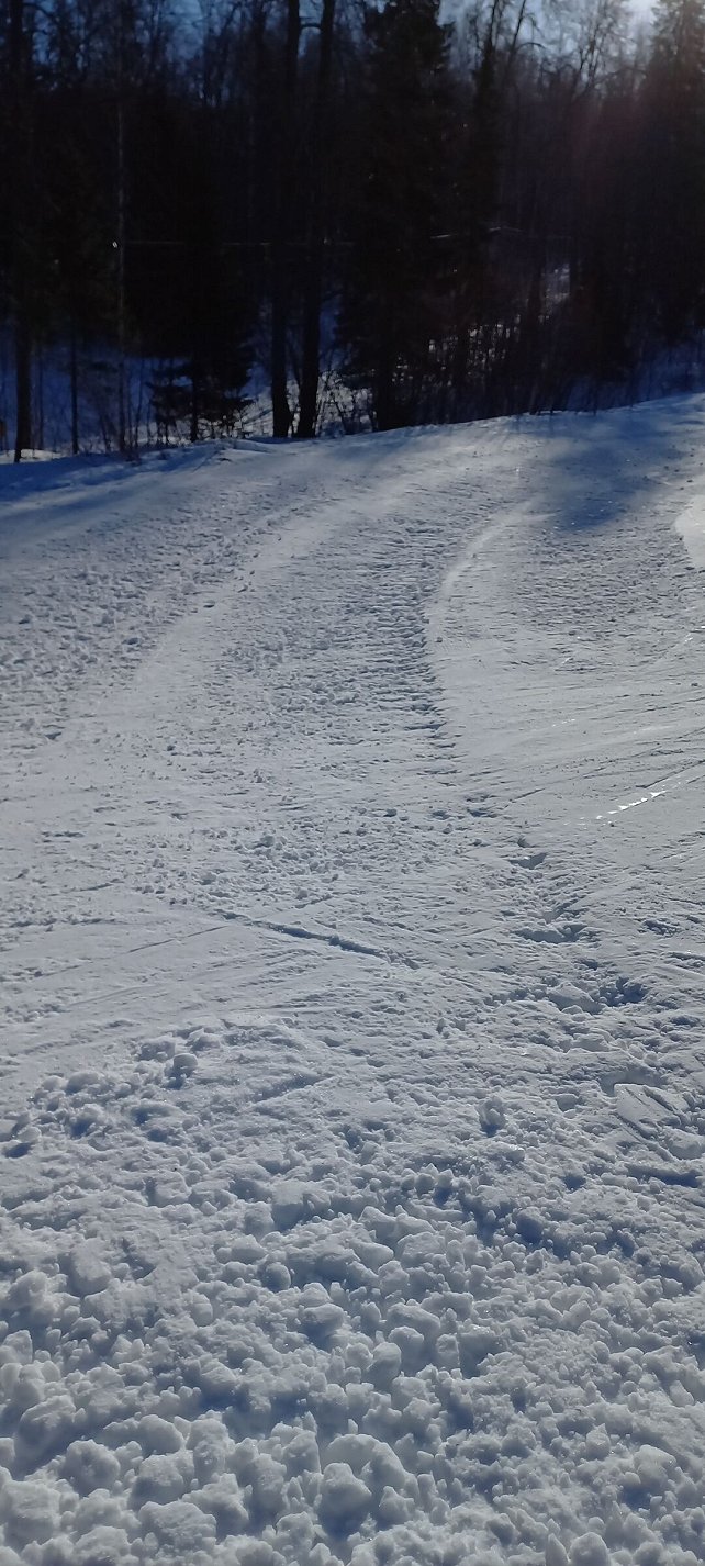 забыл подготовить трассы. Трассы стали как бетон. Как результат- "День фрирайдера". Раньше в лесном снегу фрирайдеры кричали, ловя удовольствие. Сегодня тональность криков в лесу была уже другая- похоже фрирайдеры вместо удовольствия ловили деревья. Тому виной- коварный бетонный снег в лесу...но к полудню, к счастью, наст слегка отпустило. К несчастью, закончился срок ски-пасса. Платить еще раз 2 т.р. за следующие 4 часа не поднялась рука. Спрашивается, приеду-ли еще раз? Конечно приеду...а куда деваться .. Таких трасс в округе 200км от Уфы нет. Рельеф шикарный, солнце, снег нстоящий...