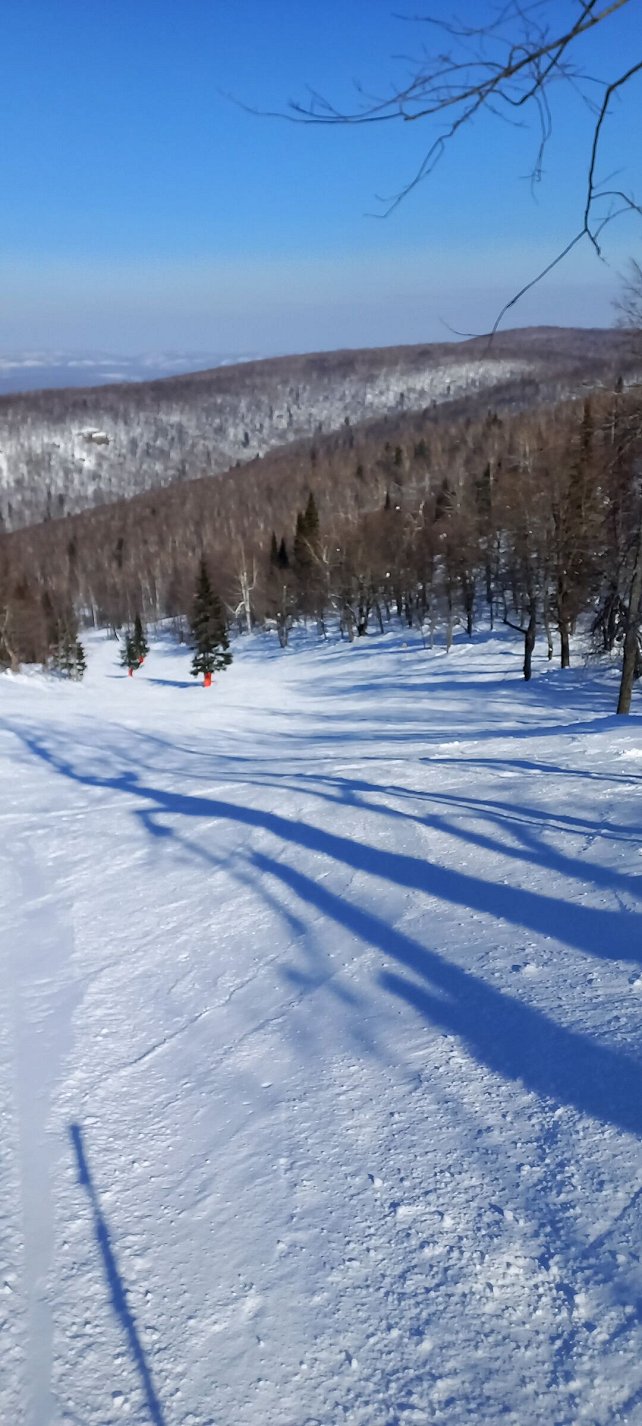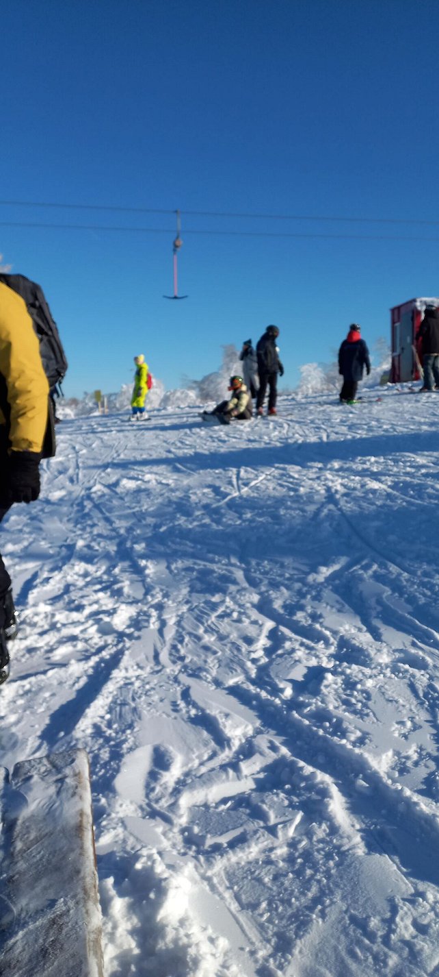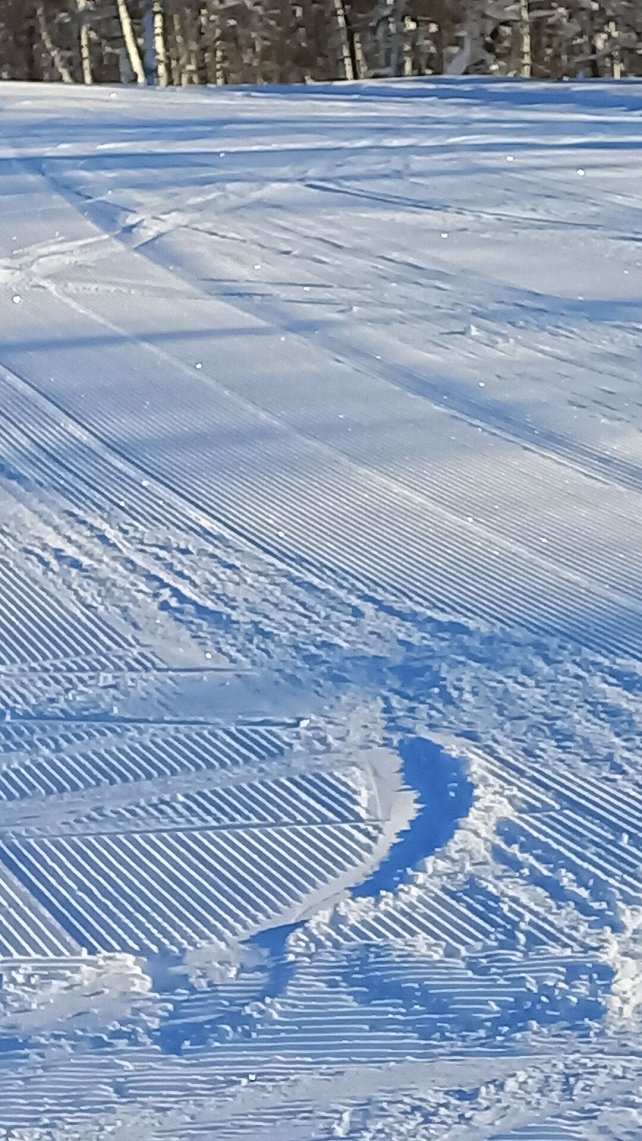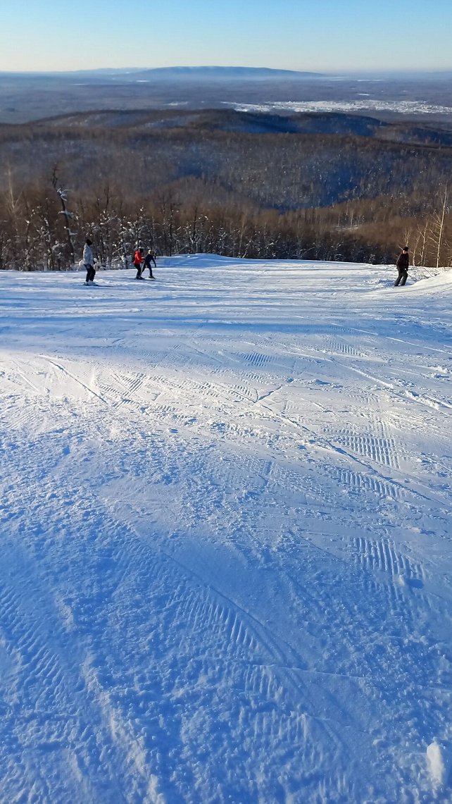 С утра погода -17, трассы не ратрачены, жесткие, но кататься можно. К обеду стало теплее, трассы отпустило. В лесу аналогично, снега много, местами корка наста. Катающихся немного, без очередей на подьемники. Жаль, нет скипасса на целый день. А так все нормуль.