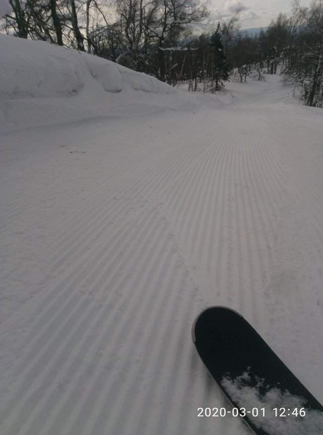 Трассы отратрачены все, утром были слегка жесткие, ближе к обеду отпустило. Катающихся очень мало, подьемники работали все, кроме 6-го. Фрирайдеров почти не было. Для лесного фрирайда снег был очень жесткий, с корочкой на поверхности, местами как бетон. Плюсовая погода (до +6)в прошедшую неделю внесла, похоже, свои коррективы. На стоянке машин было мало. Катался по трассам, пока ноги держали. День удался. Приеду еще.