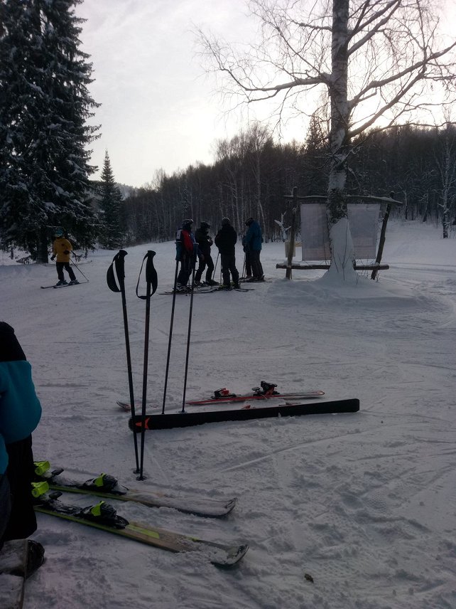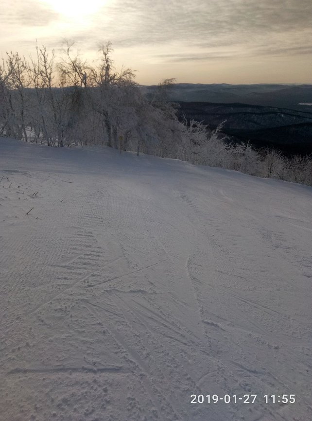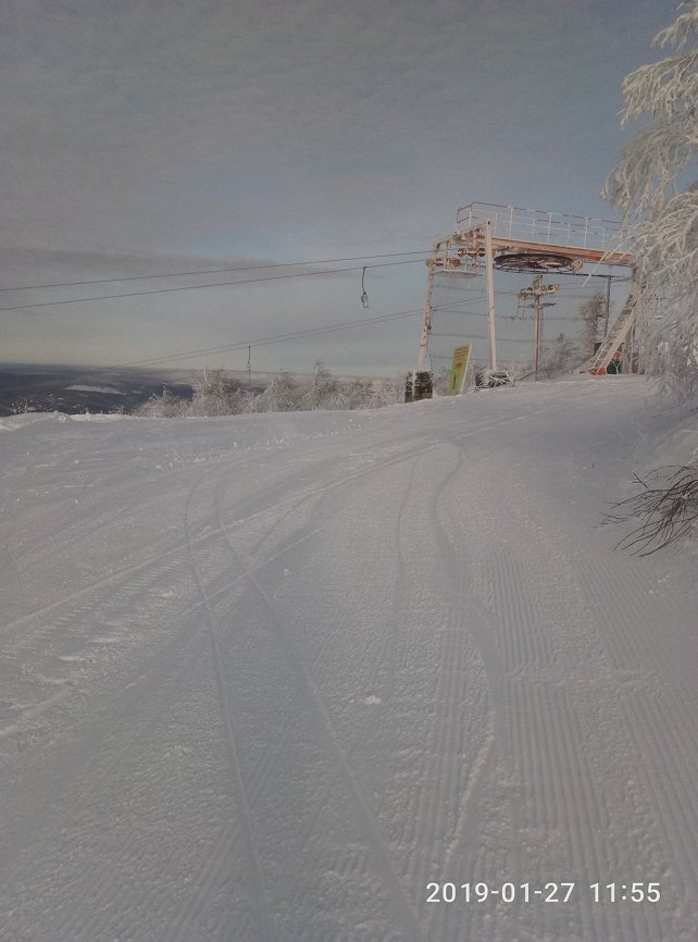 свои коррективы. При t-1 к обеду трассы были уже разбиты, снег рыхлый. Много начинающих лыжников и бордистов, для них такое состояние трасс- полная засада. На вершине сильный ветер. Подьемники 2,6,8 не работали. Как всегда порадовали вежливые канатчики. А в остальном как обычно-древние подьемники, ломовые цены на скипасс как на РозеХутор, раздевалка с кашляющей вахтершей, охраники, стерегущие шлагбаум на вьезде и прекрасный пейзаж вдоль горнолыжных трасс.