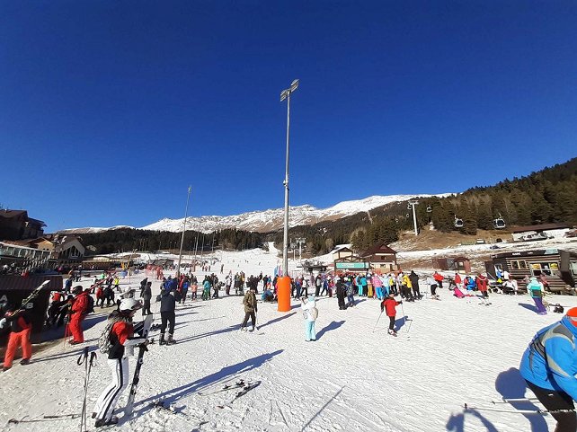 Наверху на Зелёной самообучающиеся дети,неумеющие даже пристегнуть лыжи(!), по Красной - подготовка будущих Олимпийских чемпионов...дети, на вид лет 12-ти летают под сотку в сопровождении тренера...Во второй половине дня холодный ветер сдул па перегибах снег,обнажив лёд.И под конец дня я получил "звоночек"... Мальчонка-сноубордист сносит меня,одиноко спускающегося посредине трассы... Понятно лёд,понятно умеешь, понятно родители не видят и сноуборд не заберут, но слева и справа было по 20м ширины...не лупил точно по центру... обошлось... Мальчик устоял полетел дальше, внизу я его не нашел, хотел помочь выжить