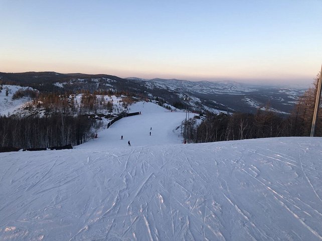 вельвет сохранялся до часу дня примерно, вечером после 18:30 почти никого, 2-3 человека, выходишь на верху и нет никого, минут через З только выходит ещё 1 человек, до 20:00 можно гонять, конечно по серединам на крутых участках лёд т.к. сноубордеры своими лопатами дерут весь снег особенно которые не умеют кататься и вообще для бордеров нужно выделять одну отдельную трассу или по лесу, и не пускать их на другие трассы, и льда там не будет! :)