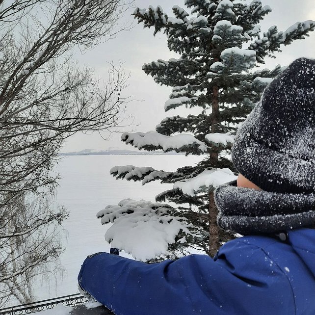 Погода супер, ветра нет ,по ощущениям - 10,12 градусов ,идет снежок,народу