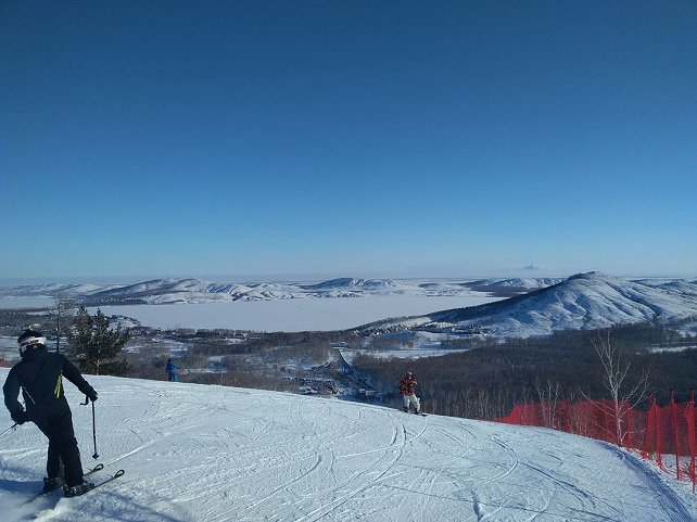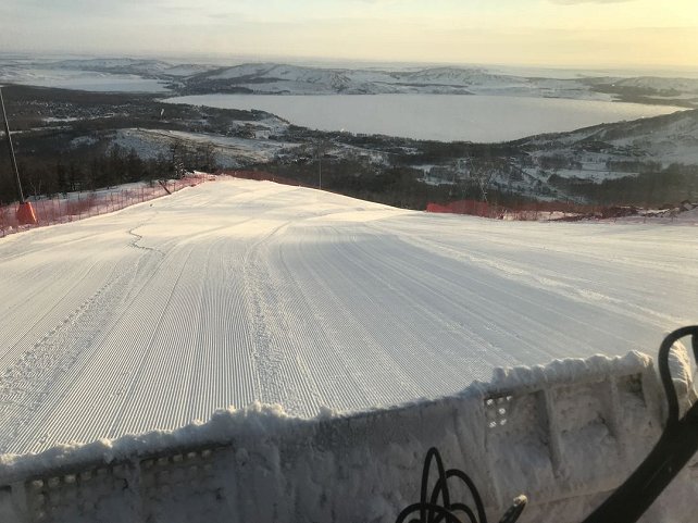 Покрытие сегодня гораздо лучше чем вчера в Абзаково, свежего снега нет, местами склон укатан почти в лёд. Из фрирайда нашёл только тропинку велосипедную более менее с снегом.
