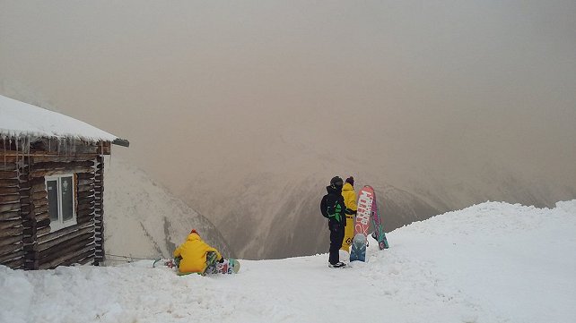 Явление природы - рыжий снег!) Ветер принес пыль с пустыни Египта.