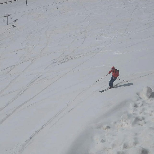 доехать почти до конца трассы под 6-креселкой. Вне трассы утрамбовался, на узких лыжах норм.
