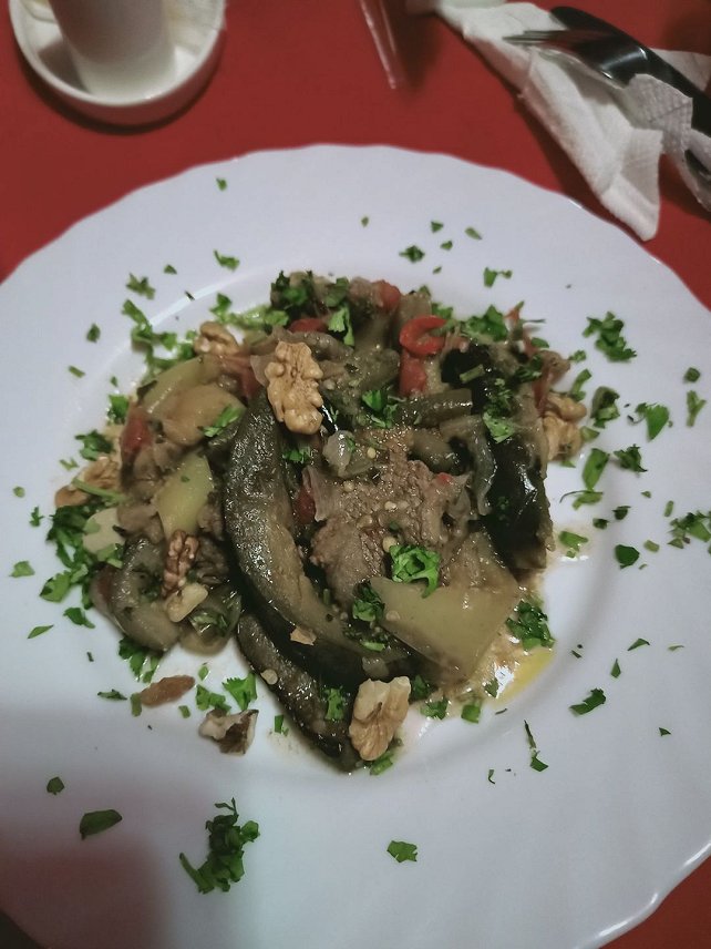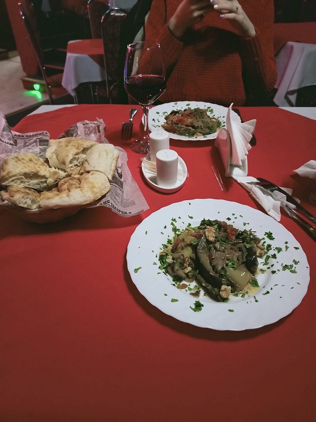 Во-первых заказали мясо по грузински. В итоге принесли одни сплошные овощи,такие как баклажаны, перец болгарский и спаржа, немного помидоров. На дне тарелки было обнаружено 3 соломки из говядины вареной. И это блюдо стоило 350 руб. Никому не советую там кушать. Во вторых грязные столовые приборы и стол. В третьих был полный беспорядок в кафе, все разбросано везде, в зале чувствовался табачный дым. т.к. при входе в кафе в фае местные ребятишки любят покурить.