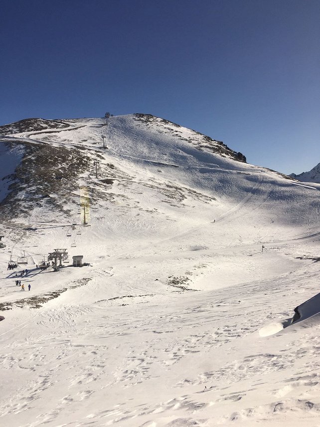 трасс коричневые, т.к. снег вперемешку с землёй и камнями. Удовольствия от катания на 2 балла.