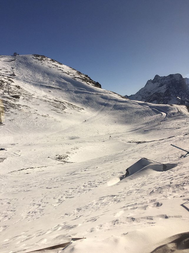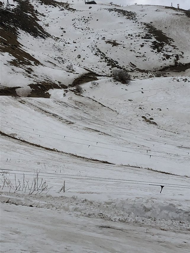 Снега нет. Если бы ежедневно включали пушки может был бы толк, а так половина