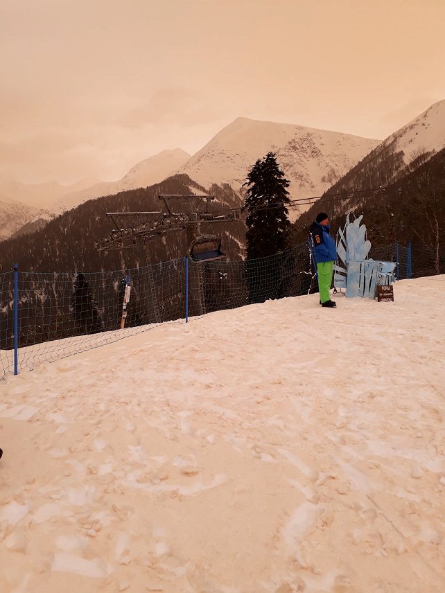 Добрый день всем! Нахожусь на Лауре.Снег желтого цвета ,на трассах липкий снег.Красные трассы закрыты,причина не ясна.Катать можно но...