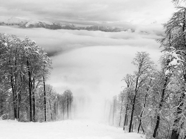 на пике, но там была метель и видимости никакой, пониже был дождь или густой туман.. это не катка( расстроились что приехали рано в этом году